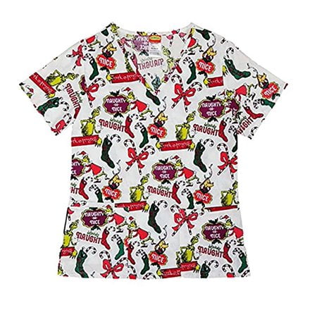 Dr Seuss The Grinch Stole Christmas Women S Medical Scrub Top Shirt Walmart Com Walmart Com