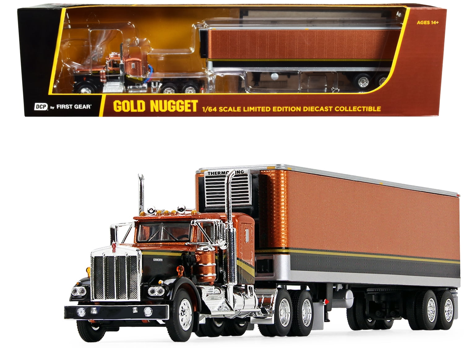 Kenworth W900a W 36 Flattop Sleeper Cab 40 Vintage Reefer Trailer Gold Nugget Gold Black 1 64 Diecast By Dcp First Gear Walmart Com